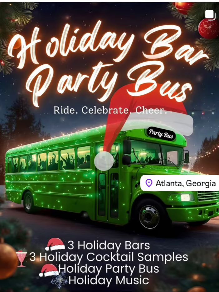 No matter what holiday you observe, ’tis the season to celebrate it! And there’s no better way to celebrate it than with your crew on the Holiday Bar Party Bus — the brightest, greenest & jolliest party bus in ATLANTA!